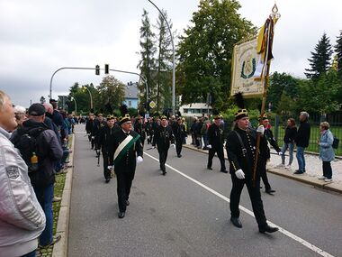 Ein weiterer Höhepunkt war am Sonntag unsere Teilnahme an der großen Bergparade in Olbernhau, die pünktlich um 13:30 Uhr startete. Es waren insgesamt 1.800 Teilnehmer an der Parade beteiligt. Die Bergparade führte auf einer Strecke von ca. 3,0 km durch die Stadt, wo zahlreiche Besucher an den Straßenrändern die Berg- und Hüttenleute mit viel Applaus begrüßten. Auf dem Gessingplatz endete die große Bergparade, wo alle Vereine und Bergkapellen Aufstellung zum Abschlusszeremoniell mit Bergkonzert nahmen.
