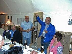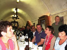 Als Gegenbesuch hat uns der Bergmannsverein am 4.9.2015 nach Ilfeld zur „Langen Wand“ eingeladen. Die Anreise erfolgte mit dem Bus und gegen 16:00 Uhr kamen wir auf dem dortigen Gelände an. Nach einer herzlichen Begrüßung durch den Vereinsvorsitzenden D. Katzmann und dem gemeinsamen Singen des Bergmannsliedes am Eingang zur „Langen Wand“ kehrten wir im unterirdischen Festraum ein. Dieser aufgefahrene Raum fasst ca. 50 Besucher. In diesem war mit viel Liebe alles sehr schön hergerichtet und mit vielen Kerzen festlich ausgeleuchtet.