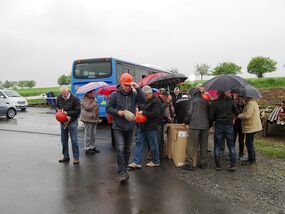 „Sankt Barbara“ führte uns zu einer gemeinsamen Befahrung des Solfeldes der Deusa International GmbH nach Kehmstedt. Dort erwarteten wir die Vereinskameraden aus Nordhausen, die pünktlich mit dem Bus zur vereinbarten Zeit dort eintrafen. Es ging dann gemeinsam weiter noch ein Stück mit dem Bus bis zu den Solanlagen in Richtung Windkrafträder.