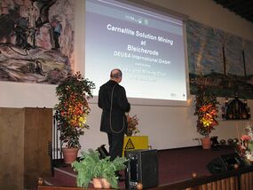Wir konnten uns alle ein Bild vom Solfeld machen und erfuhren die Weiterentwicklung dieses Feldes für die nächsten Jahrzehnte. Von unseren Standort hatten wir einen sehr guten Blick über die Anlage bis hin zum Prozessgebäude in Bleicherode – Ost. Wir waren fasziniert von der Ausdehnung des Solgeländes und der Entfernung bis zur Verarbeitungsanlage. Anschließend ging es weiter zu einer kurzen Besichtigung des Prozessgebäudes.