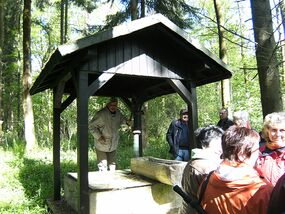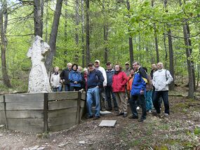 Bei herrlichem Wetter und überwiegend Sonnenschein ging es unter Führung unseres Kameraden Günter Druselmann von der Jagdhütte vorbei am Backhaus im Lohraer Forst und an der Wüstung Schierenberg und den eigens für die Wüstung errichteten Brunnen zur „Steinernen Jungfrau“.