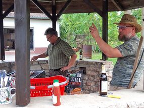 Da an diesem Tag das Wetter mitspielte, nahmen wir die Plätze unter dem Vorbau des Schützenhauses ein. Es wurde der große stationäre Grill angezündet und die Kameraden Schmidt und Schmelz haben dort für unser leibliches Wohl Würstchen und Steaks gebraten. In gemütlicher Runde verweilten wir bei einem guten Essen und Trinken noch einige Zeit. Dabei wurde viel miteinander erzählt und auch diesmal verging die Zeit sehr schnell. Mit einem Kleinbus erfolgte dann die Rückfahrt durch unseren Kameraden Ahrens nach Bleicherode. Alle Beteiligten erlebten in diesem Jahr einen sehr schönen Vereinswandertag. Im nächsten Jahr wird es wieder zu diesem Zeitpunkt einen Wandertag geben.